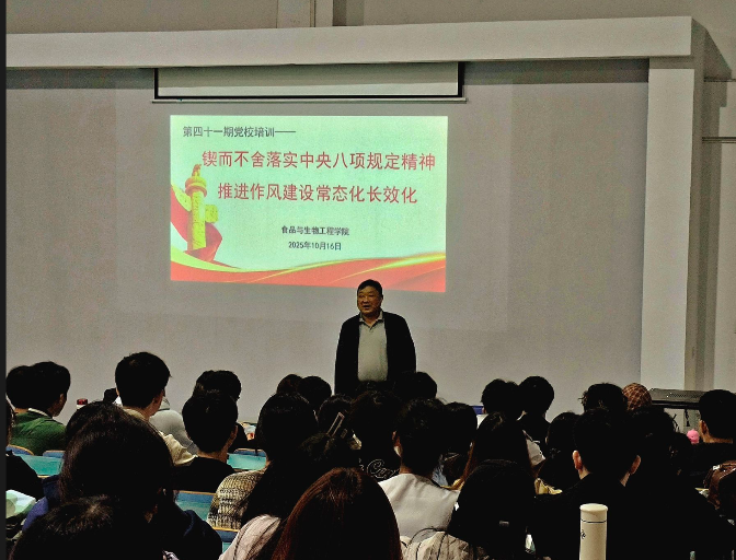 2025年10月16日,食品与生物工程学院第四十一期党校培训班开班仪式在生化楼108教室隆重举行。