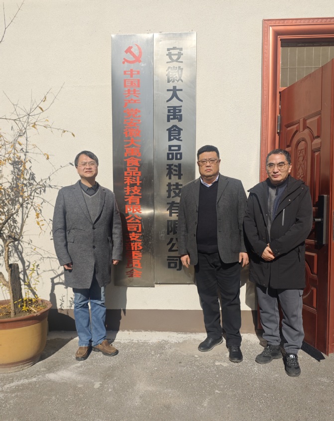 2025年11月18日,食品与生物工程学院副院长马龙带领课题组成员赵大庆赴安徽大禹食品科技有限公司开展科技服务交流,受到公司董事长张旭的热情接待。