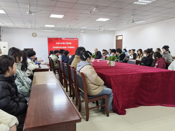 2025年12月8日上午,食品与生物工程学院在F1216会议室召开2026届毕业生就业工作座谈会。学院党委副书记伍亚华、毕业班辅导员徐庆、2022级奖助学金获得者及助学贷款学生代表共同参会。会议以“党建引领·星光筑梦”为主题,聚焦职业能力提升与价值观培育,为困难学生群体提供精准就业指导,助力实现高质量充分就业。
