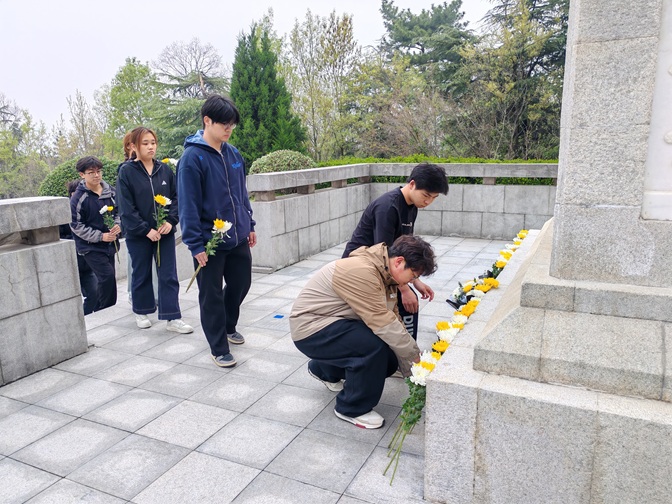 活动现场,氛围庄严肃穆。全体学员怀着无比崇敬的心情,有条不紊地推进各项环节。在巍峨耸立的烈士纪念碑前,学员们举行了庄严的入团宣誓仪式。那一句句铿锵有力的誓言,回荡在陵园上空,彰显着新时代青年的青春担当与使命。随后,学员们饱含深情地进行红色诗歌朗诵,以真挚的情感、激昂的语调,缅怀那些为国家和人民英勇献身的先烈们。朗诵声落,学员们依次走向纪念碑,向革命先烈敬献鲜花,将对先烈的深切哀思融入这一朵朵鲜花之中。